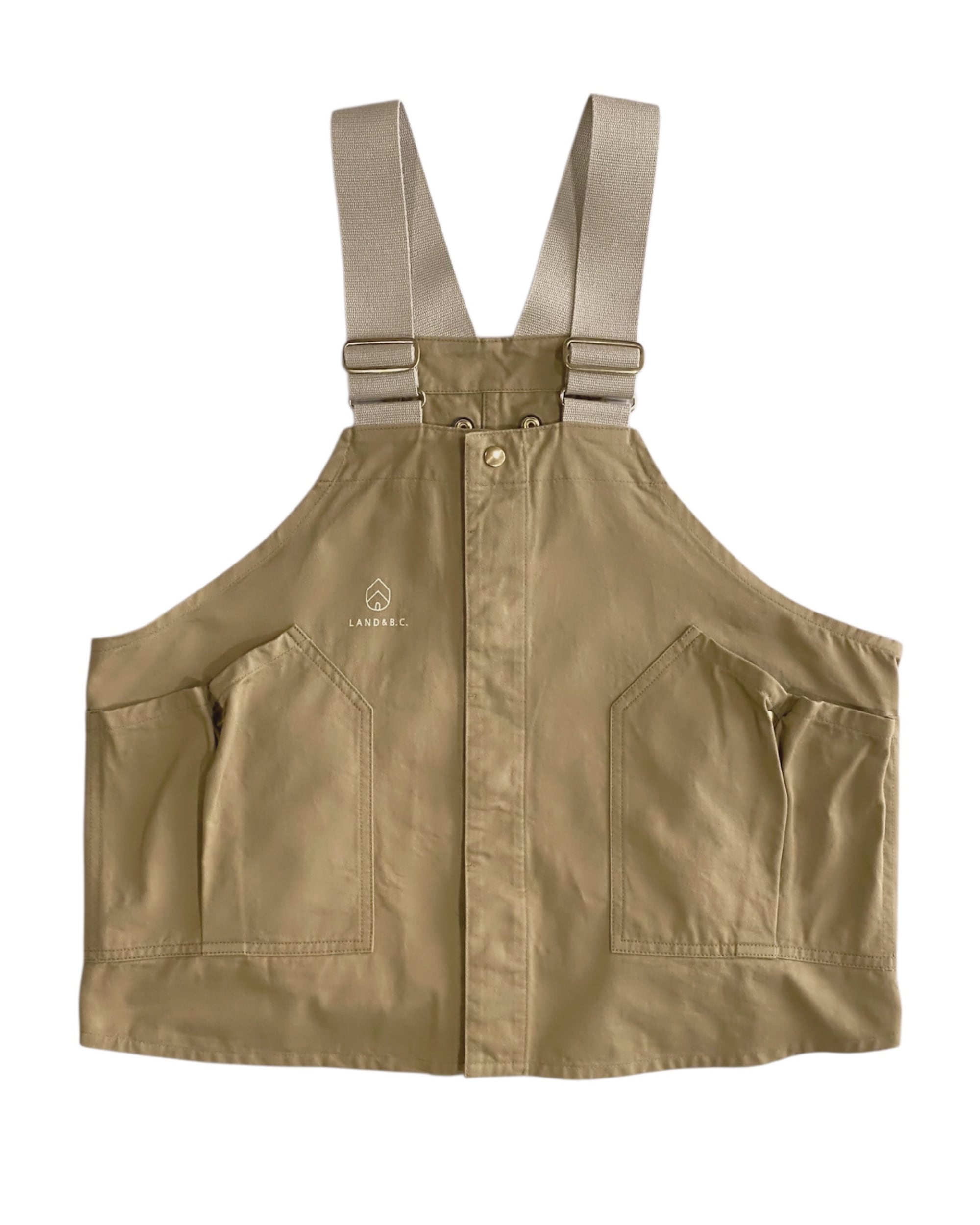 It features gusseted front pockets for easy hand access and a large harvest pocket on the back. At the lower back, three snap-button loops allow harvest bags to be attached on either side. A separately sold detachable apron can also be added and used as a tool pocket (waist pouch).