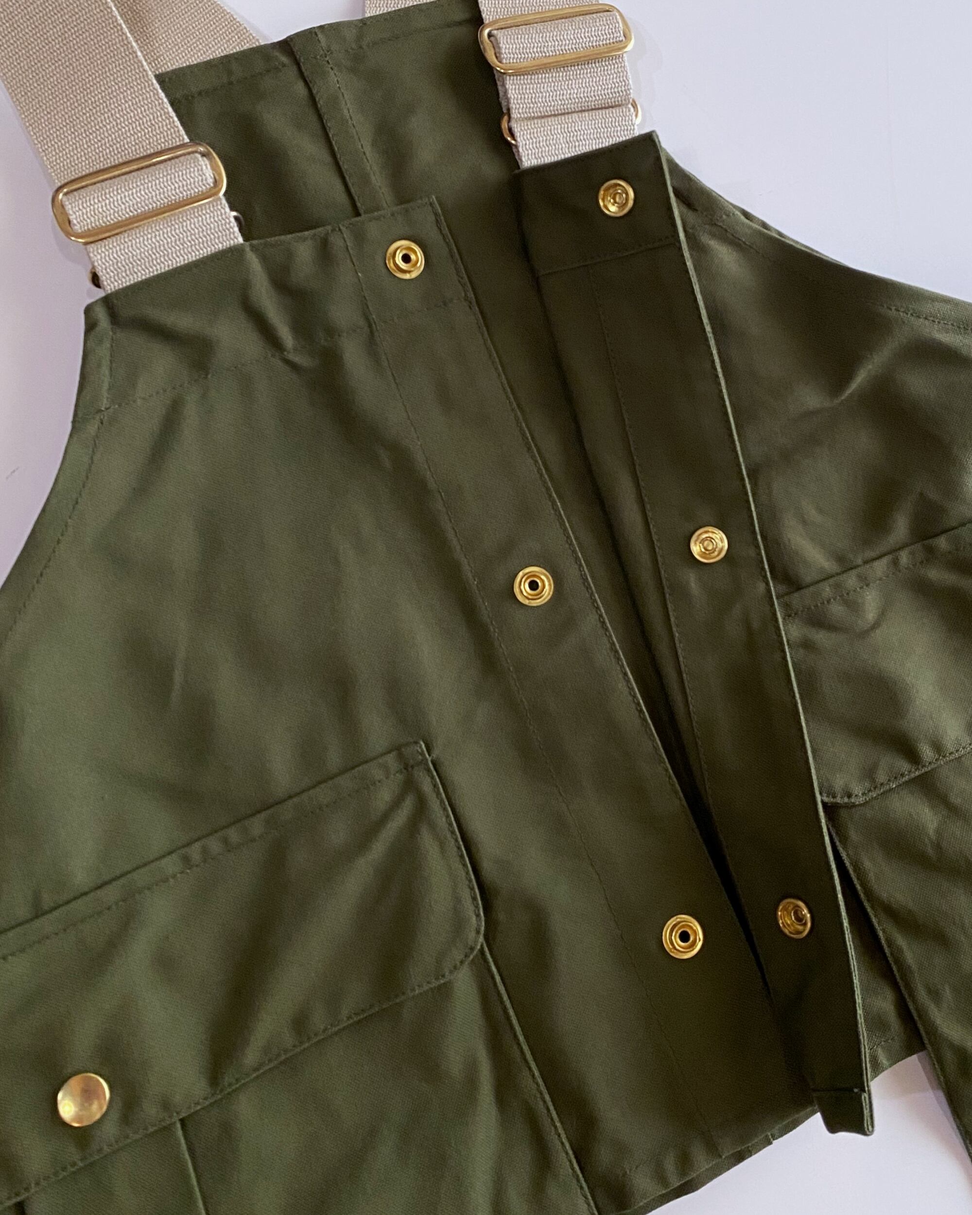 The fittings and hooks on the shoulder belt are made of solid brass, ensuring they develop a patina over time.