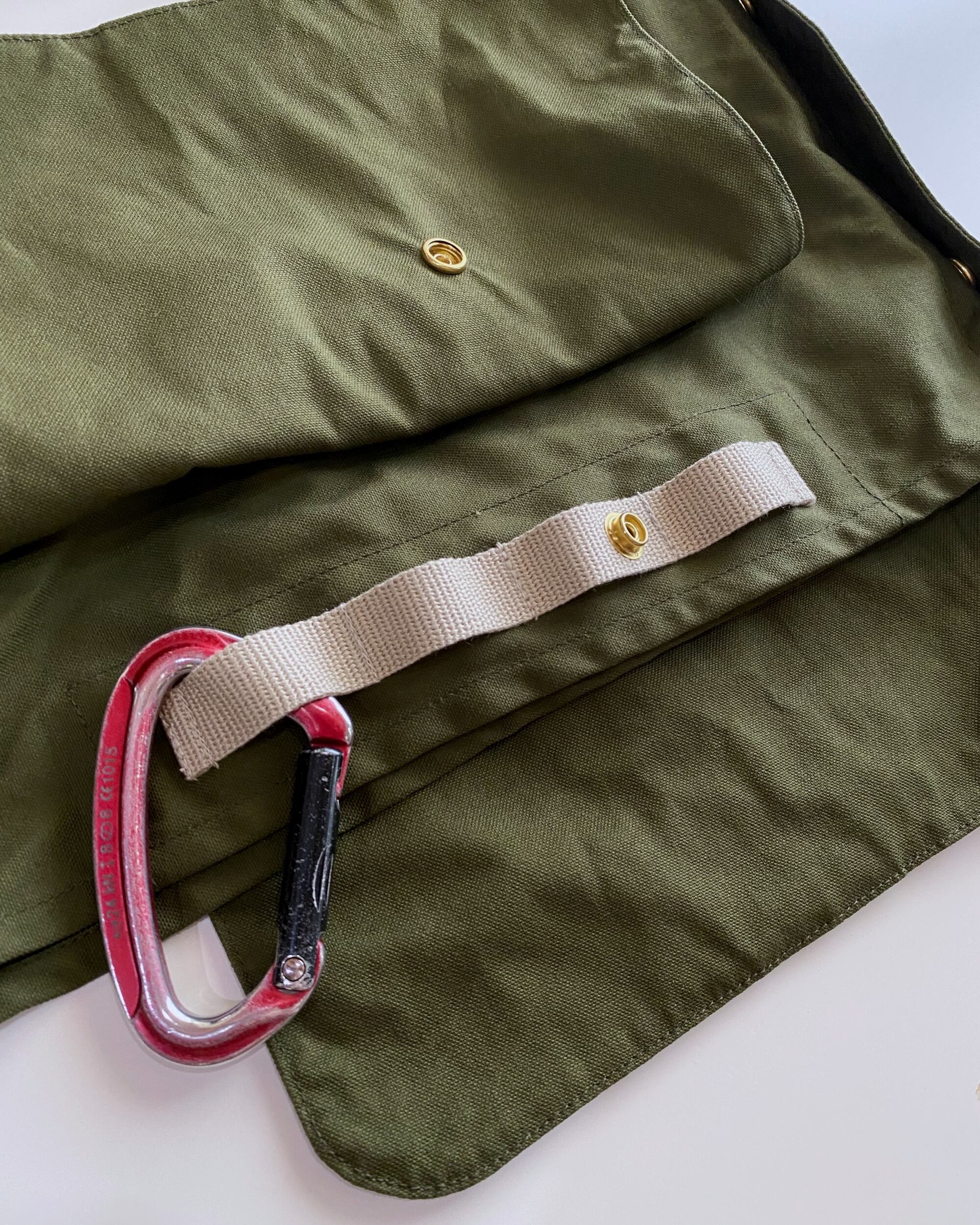 バタつきが気になるときは、ポケット裏にあるループのホックと固定できます。ホックを外すと、屈んだ作業時やバイクに乗る時などに、もたつきを解消してくれます。このループはカラビナを引っ掛けたり何かと便利な役割を果たしてくれます!