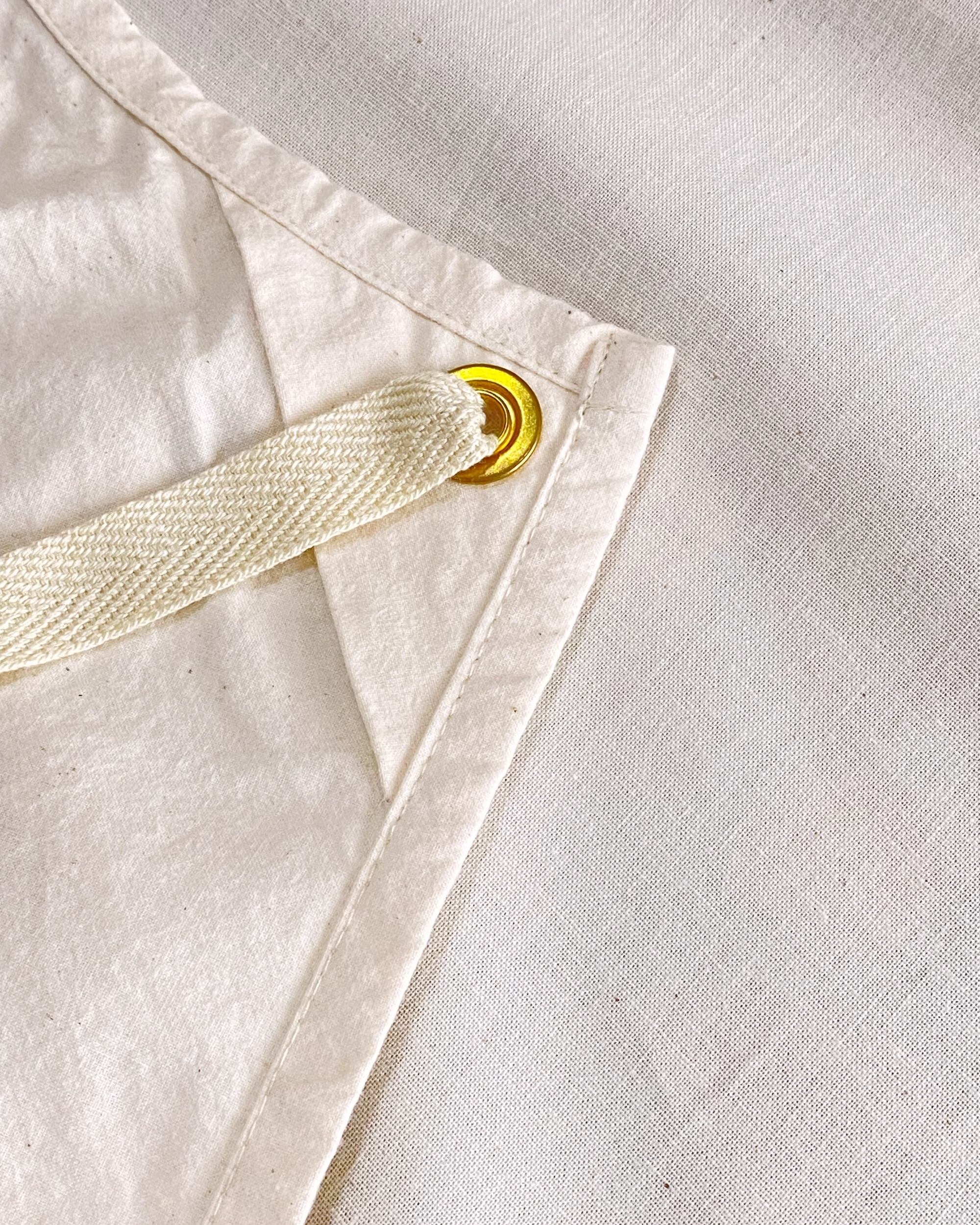 少しの手間をかけることで、より”丁寧な作業”につながると思います。料理や仕事、作業時に意識的に着てほしいエプロンです。