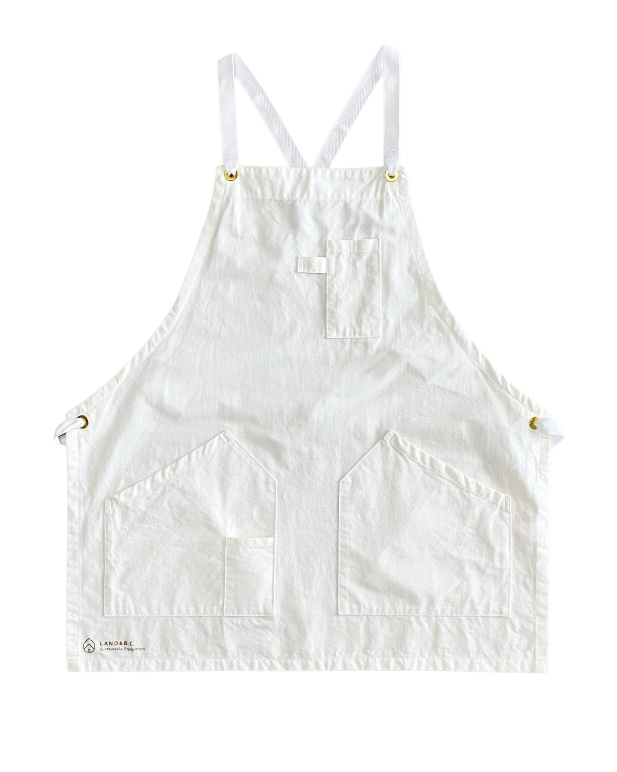 The apron has a back cross strap design, giving it a neat appearance. It is intended for use as a set with the "Low" series from the same collection. Wearing it as a set creates a stylish look similar to a long apron.