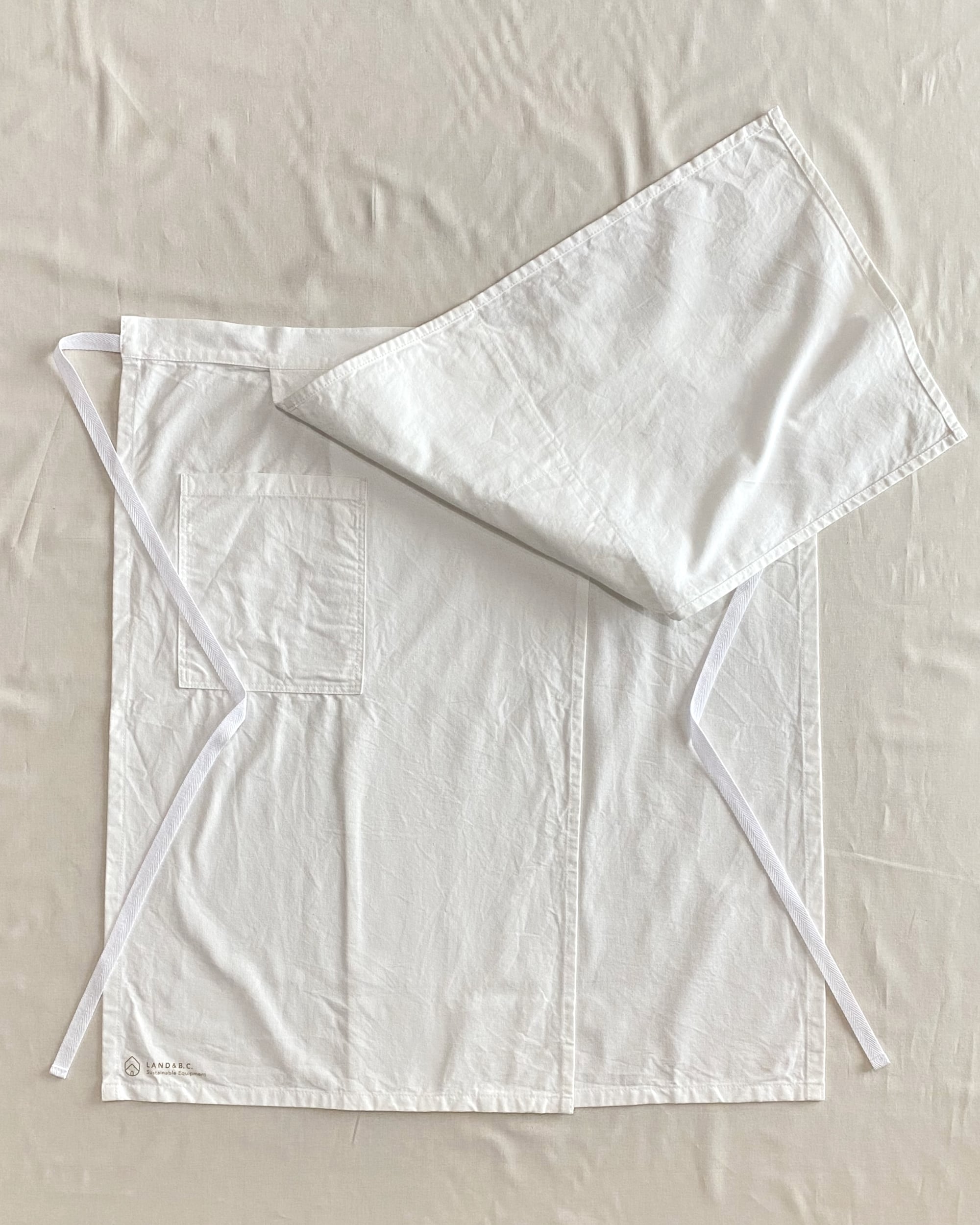 The front of the apron has a two-pocket apron, giving it a refined and elegant look. It can be worn alone with your favorite shirt or T-shirt, or as a set with the "Short" series from the same collection for a stylish appearance similar to a long apron.